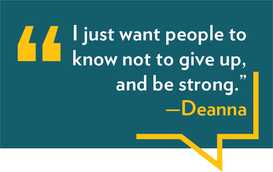 “I’m just so happy that there’s resources out there to help people because when you’re in the midst of feeling like you’re drowning or you need help, it feels like the world’s against you and no one’s there,” Deanna said. “So, this opportunity was a great thing and experience to go through, and sitting here to even speak about it, I just want people to know not to give up, and be strong.”